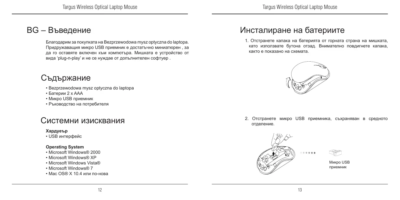 Téléchargez la notice de votre Безжична мишка au format PDF gratuitement ! Retrouvez votre notice WIRELESS OPTICAL LAPTOP MOUSE - TARGUS et reprennez votre appareil électronique en main. Sur cette page sont publiés tous les documents nécessaires à l'utilisation de votre appareil WIRELESS OPTICAL LAPTOP MOUSE de la marque TARGUS.