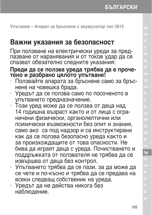 Téléchargez la notice de votre електрическа самобръсначка au format PDF gratuitement ! Retrouvez votre notice MOBILE SHAVER - MOSER et reprennez votre appareil électronique en main. Sur cette page sont publiés tous les documents nécessaires à l'utilisation de votre appareil MOBILE SHAVER de la marque MOSER.