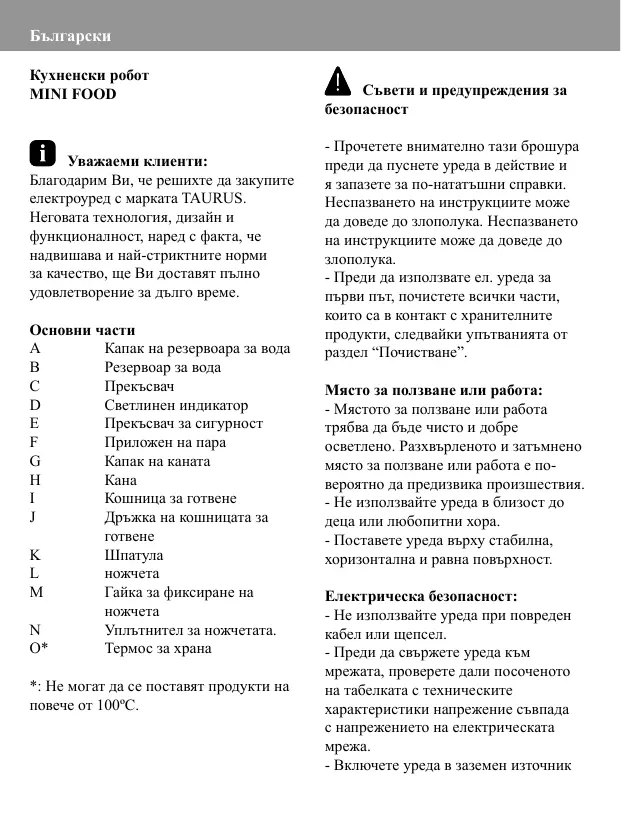 ROBOT DE CUISINE A VAPEUR 925004 - Кухненски робот TAURUS - Notice d'utilisation et mode d'emploi gratuit
