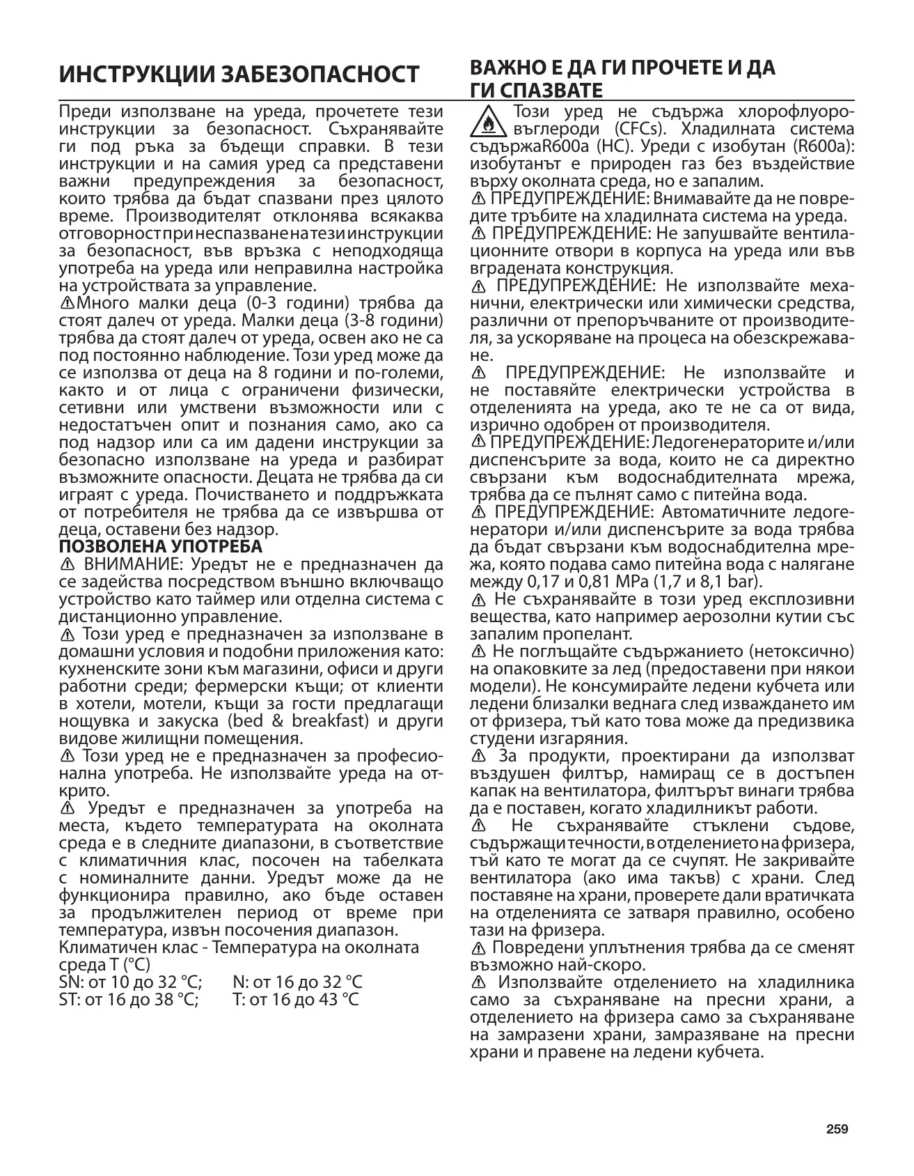 SN : De 10 à 32 °C; N : De 16 à 32 °C ST : De 16 à 38 °C; T : De 16 à 43 °C Cet appareil ne contient pas de CFC. Le circuit de ce réfrigérateur contient du R600a (HC).