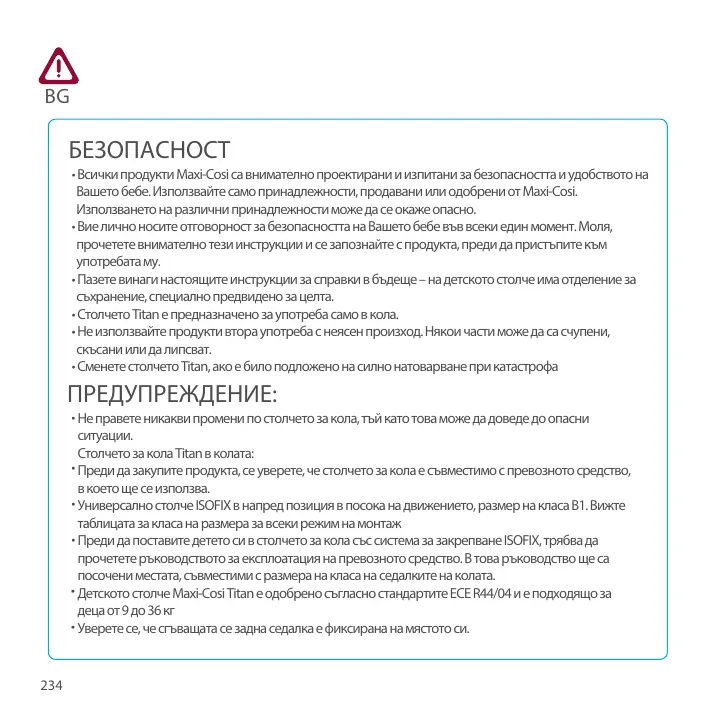 Téléchargez la notice de votre автомобилна седалка au format PDF gratuitement ! Retrouvez votre notice TITAN - MAXI-COSI et reprennez votre appareil électronique en main. Sur cette page sont publiés tous les documents nécessaires à l'utilisation de votre appareil TITAN de la marque MAXI-COSI.