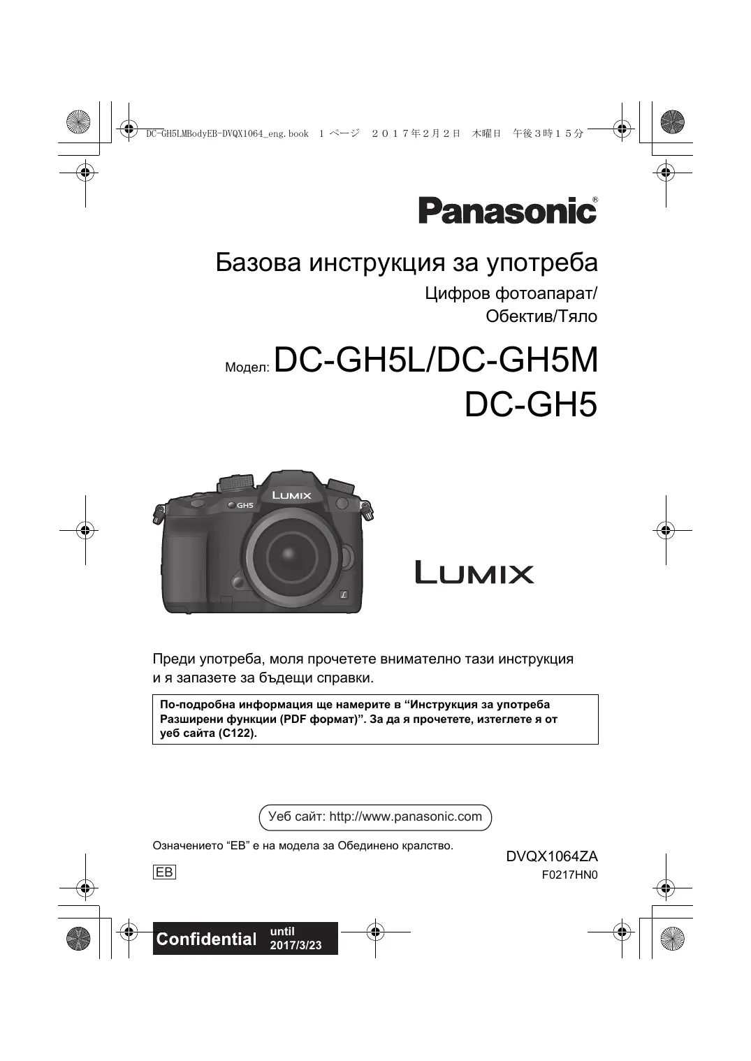 Четене на инструкцията за употреба (PDF формат) По-подробна информация ще намерите в “Инструкция за употреба Разширени функции (PDF формат)”. Изтеглете я от следния уеб сайт, за да я прочетете: http://panasonic.jp/support/dsc/oi/ index.html?model=DC-GH5&dest=EB • Кликнете върху желания език.