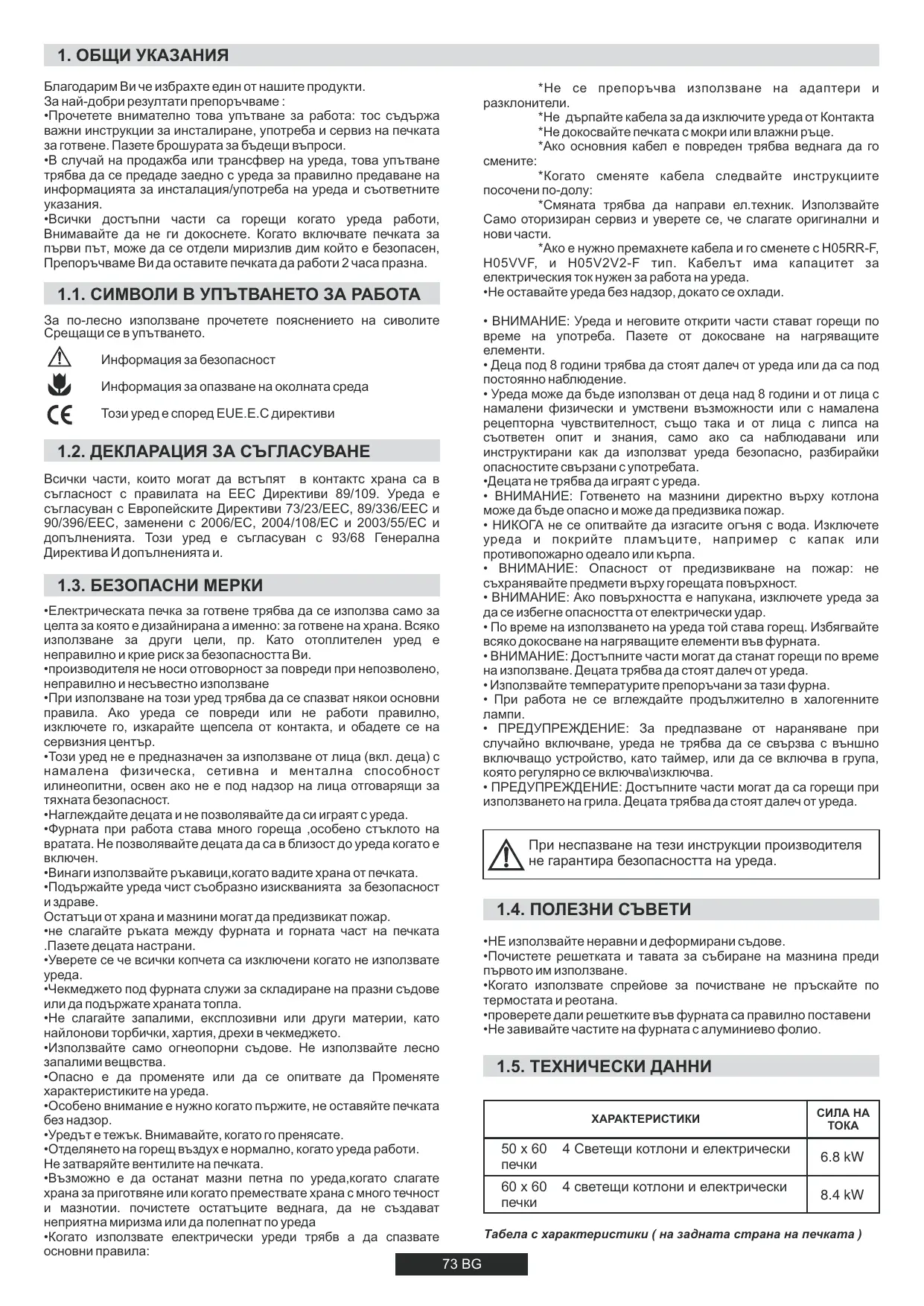 - Не завивайте частите на фурната с алуминиево фолио. 1.5. ТЕХНИЧЕСКИ ДАННИ ХАРАКТЕРИСТИКИ 50 x 60