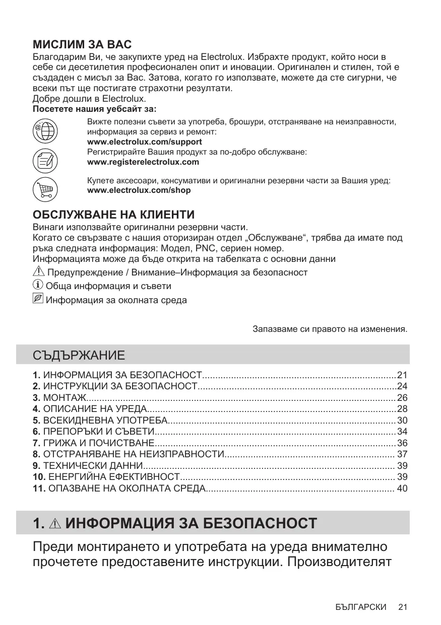 РЪКОВОДСТВО ЗА ПОТРЕБИТЕЛЯ LIR60430 - LIR60430 ELECTROLUX