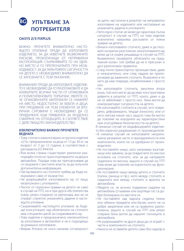 Téléchargez la notice de votre автомобилна седалка au format PDF gratuitement ! Retrouvez votre notice OASYS FIX PLUS - CHICCO et reprennez votre appareil électronique en main. Sur cette page sont publiés tous les documents nécessaires à l'utilisation de votre appareil OASYS FIX PLUS de la marque CHICCO.
