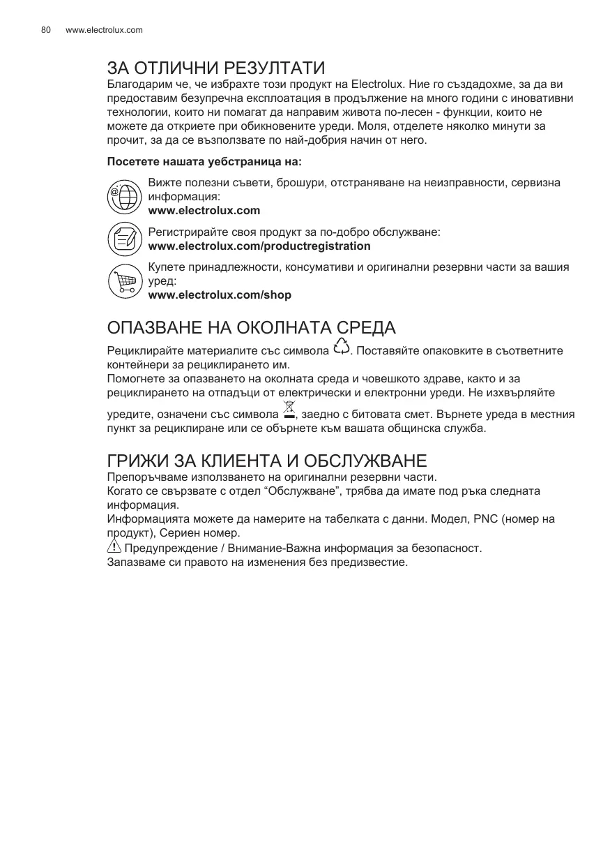 Enregistrer votre produit pour obtenir un meilleur service : www.electrolux.com/productregistration Acheter des accessoires, consommables et pièces de rechange d’origine pour votre appareil : www.electrolux.com/shop
