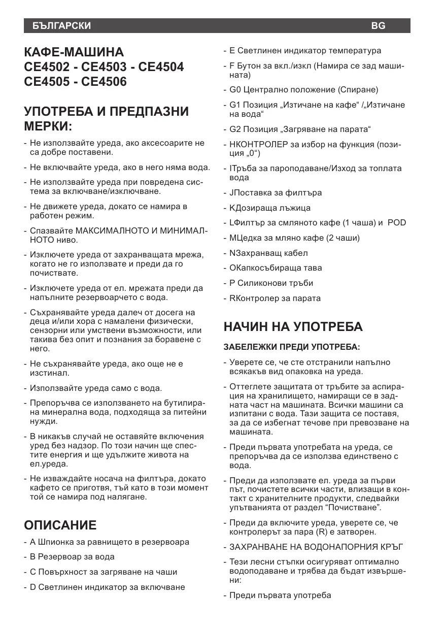 DEUTSCH KAFFEEMASCHINE CE4502 - CE4503 - CE4504
