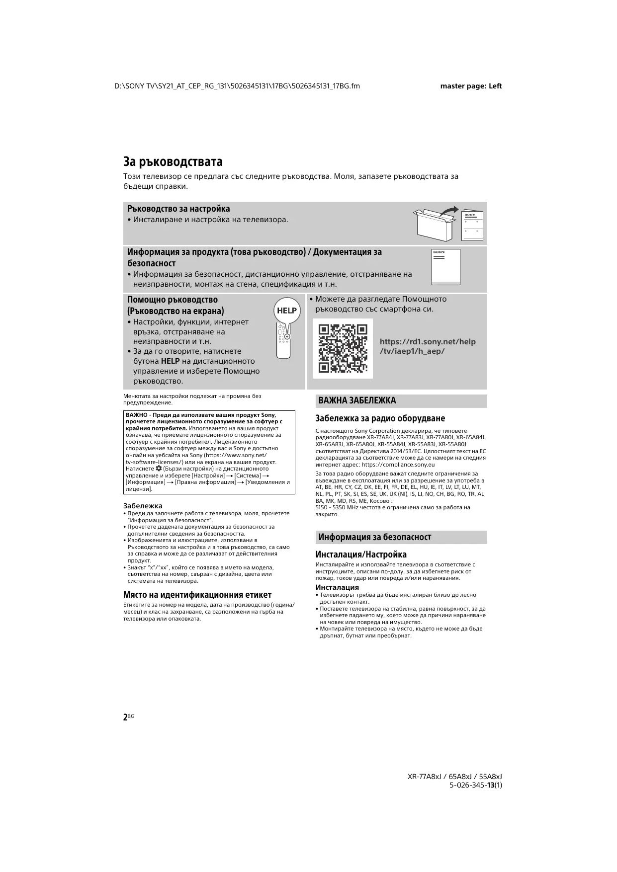 BRAVIA XR-55A80J - BRAVIA XR-65A80J - XR-77A80J - Телевизор SONY - Notice d'utilisation et mode d'emploi gratuit