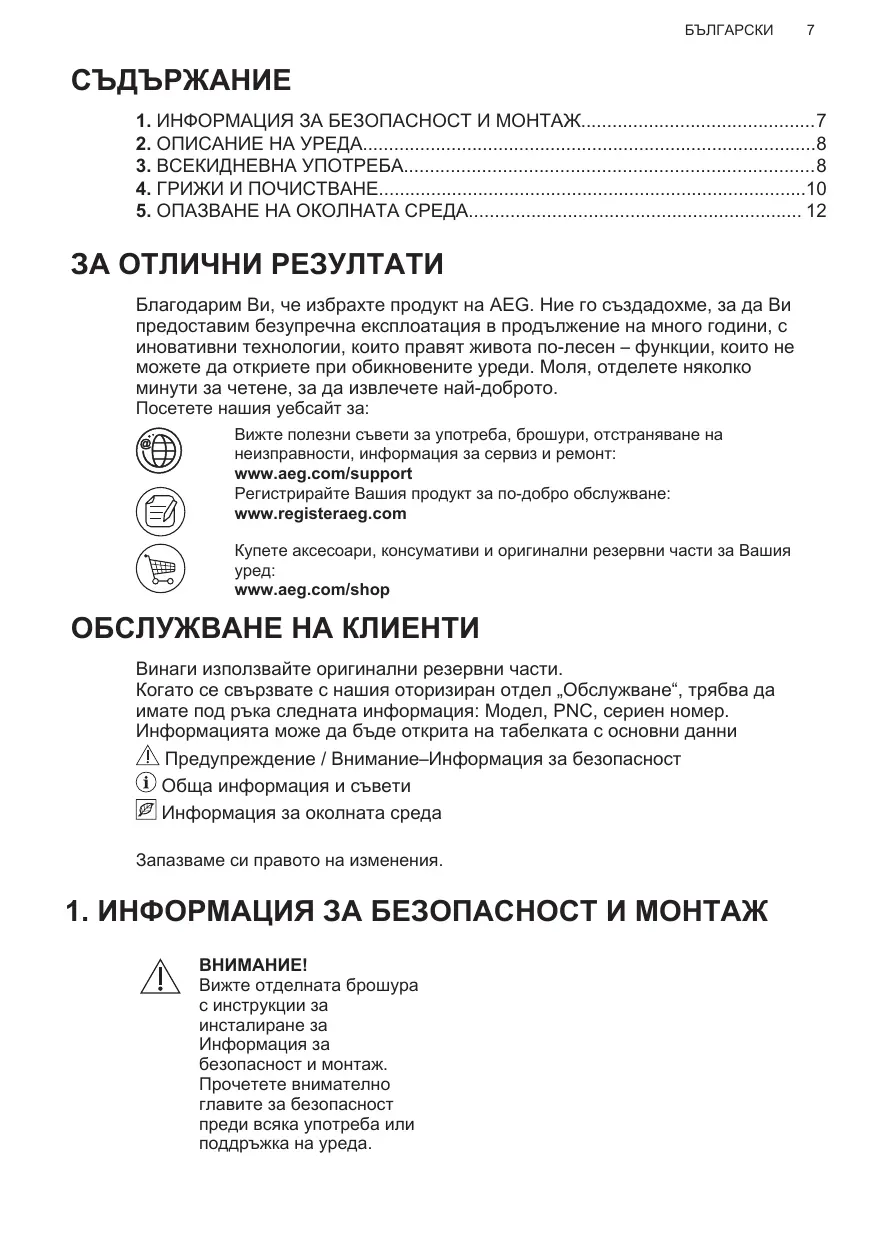 Enregistrer votre produit pour un meilleur service : www.registeraeg.com Acheter des accessoires, consommables et pièces de rechange d’origine pour votre appareil : www.aeg.com/shop
