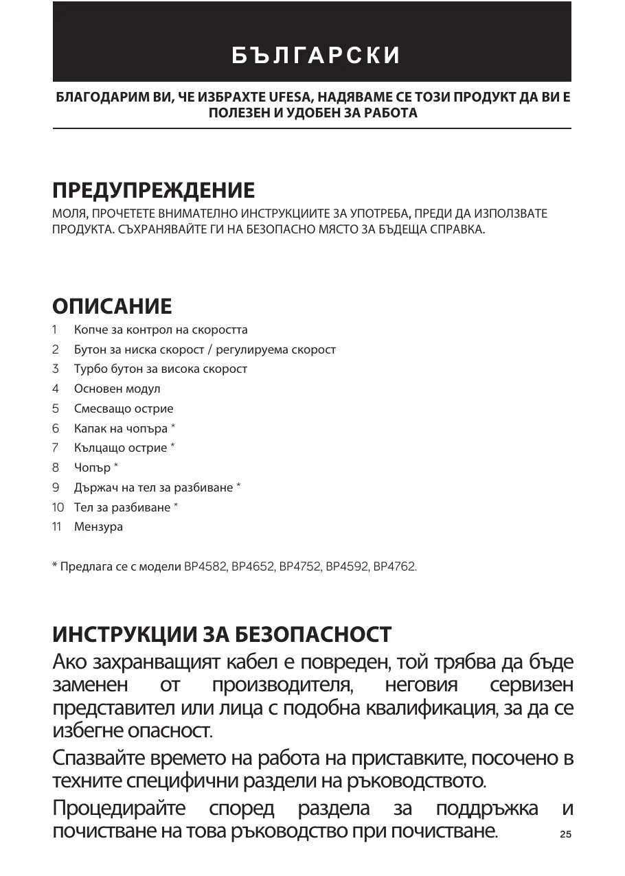 BP4650 - миксер UFESA - Notice d'utilisation et mode d'emploi gratuit