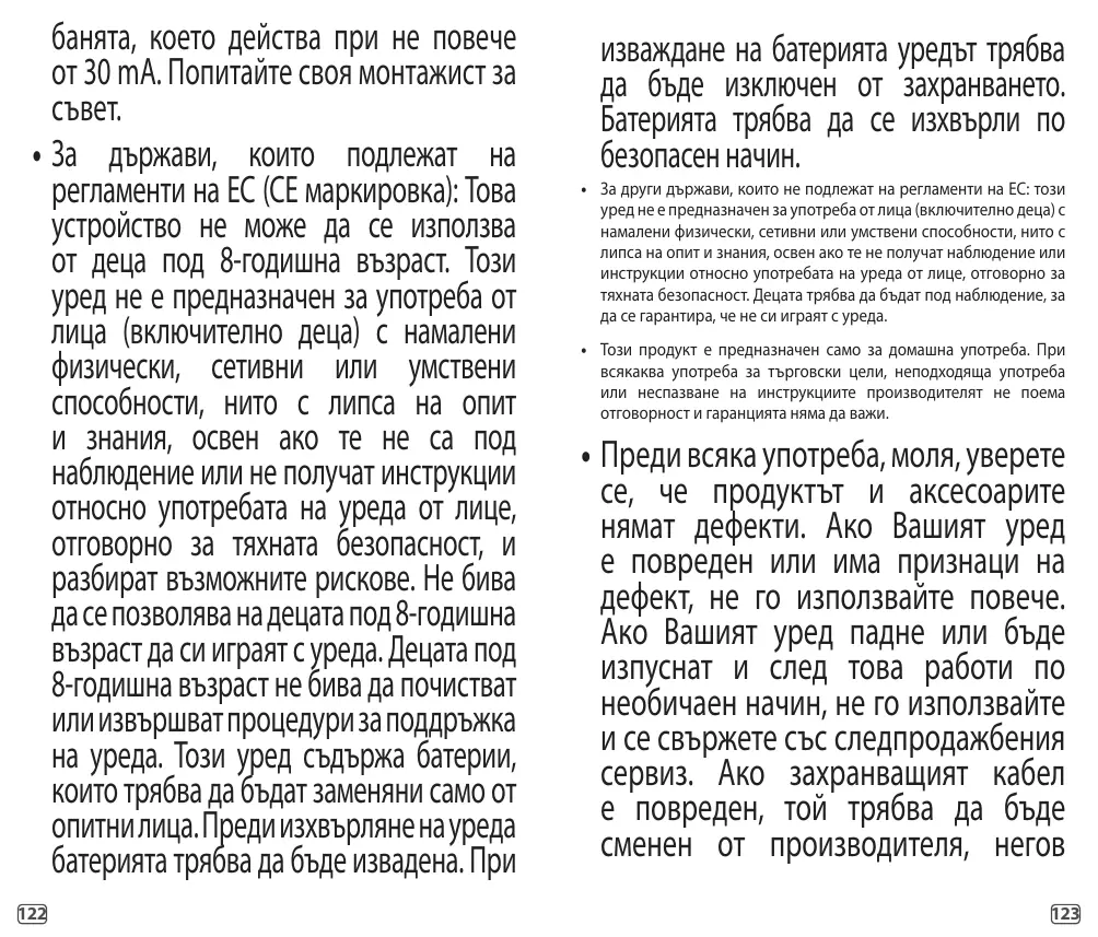 • Pour les pays soumis à la réglementation UE (marquage CE) : Cet appareil ne doit pas être utilisé par des enfants. Cet appareil peut être utilisé par des personnes ayant des capacités physiques, sensorielles ou mentales réduites ou dénuées d’expérience ou de connaissance, s'ils (si elles) sont correctement surveillé(e)s ou si des instructions relatives à l'utilisation de l'appareil en toute sécurité leur ont été données et si les risques encourus ont été appréhendés. Les enfants ne doivent pas jouer avec l’appareil. Cet appareil contient des batteries qui ne peuvent être remplacées que par des personnes qualifiées. Le nettoyage et l'entretien par l'usager ne doivent pas être effectués par des enfants. La batterie doit être retirée de 10