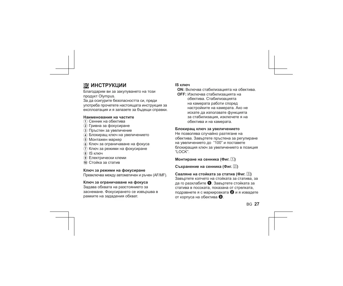 Visite nuestra página web http://www.olympus-europa.com o Ilame al: 5 Marca de montagem 6 Interruptor limitador de focagem 7 Interruptor de modo de focagem 8 Interruptor IS 9 Contactos elétricos 0 Encaixe do tripé Interruptor de modo de focagem 6 Comutator de limitare a focalizării 7 Comutator pentru modul de focalizare 8 Comutator IS 9 Contacte electrice
