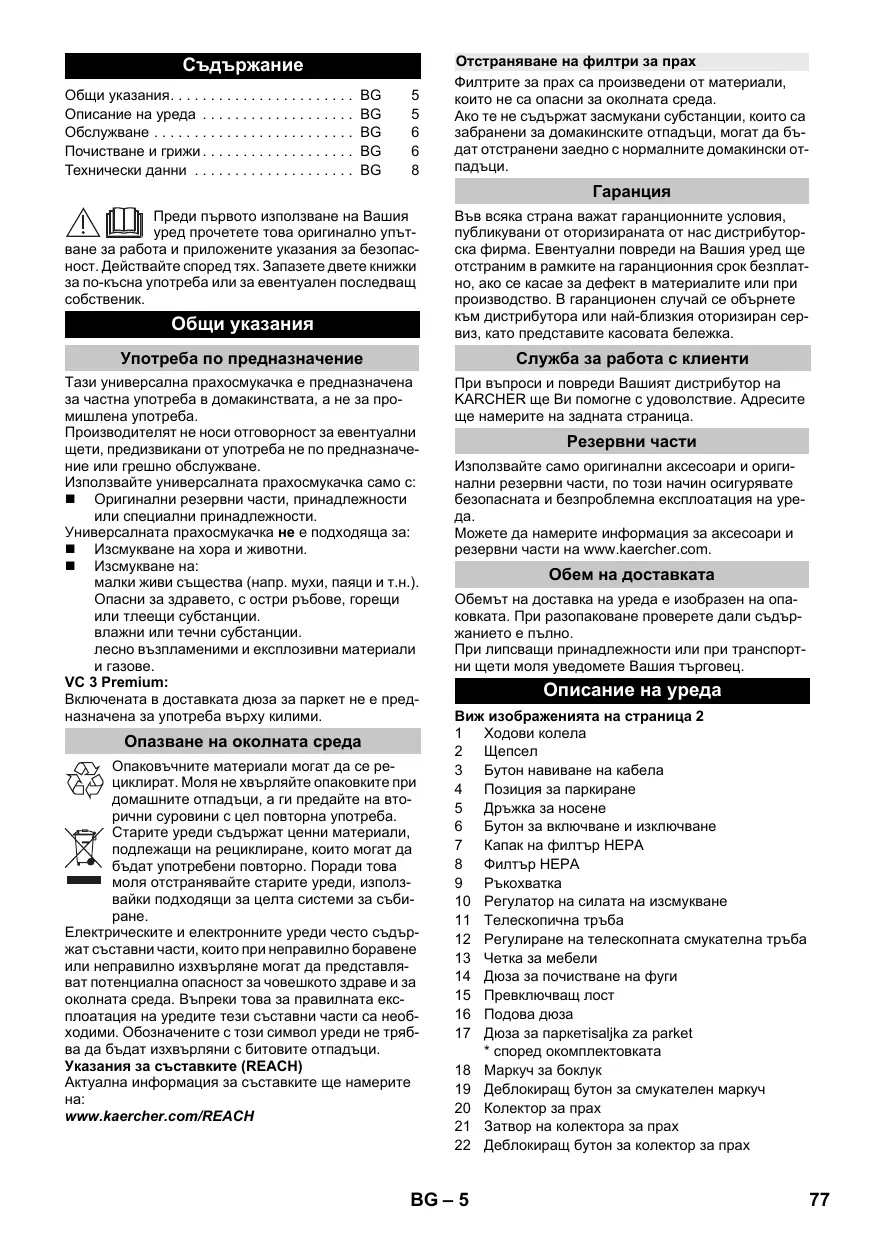 Téléchargez la notice de votre Прахосмукачка с контейнер au format PDF gratuitement ! Retrouvez votre notice VCS - KARCHER et reprennez votre appareil électronique en main. Sur cette page sont publiés tous les documents nécessaires à l'utilisation de votre appareil VCS de la marque KARCHER.