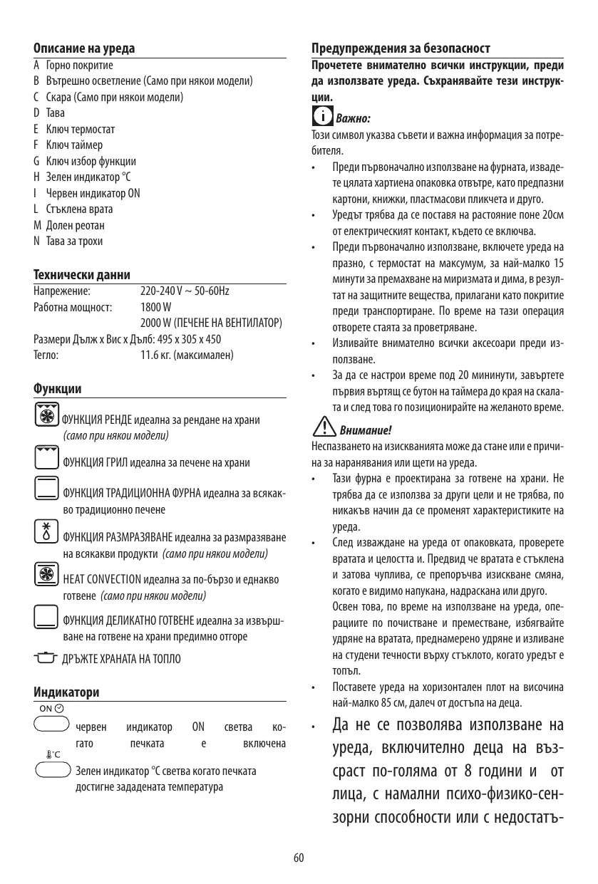 • L’appareil doit être placé à 20 cm au moins de la prise électrique sur laquelle il est branché. • Avant la première utilisation, faites fonctionner l’appareil à vide, thermostat au maximum, pendant au moins 15 minutes pour éliminer l’odeur de neuf et éventuellement la fumée due aux graisses de protection appliquées sur les résistances avant le transport. Pendant cette opération, aérez la pièce. • Lavez soigneusement tous les accessoires avant l’utilisation. • Pour programmer des temps inférieurs à 20 minutes, tourner d’abord le bouton minuterie à fond puis la positionner sur le temps souhaité.