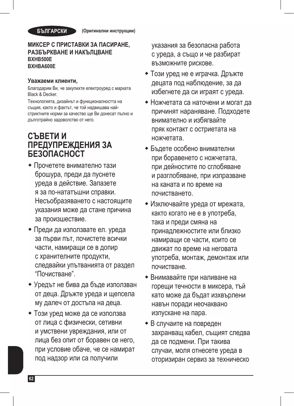 BXHB500E - Ръчен блендер BLACK & DECKER - Notice d'utilisation et mode d'emploi gratuit