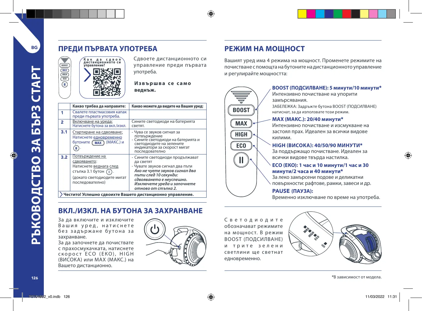 Votre appareil dispose de 4 modes de puissance. Changez le mode de nettoyage en utilisant votre télécommande et en ajustant la puissance.