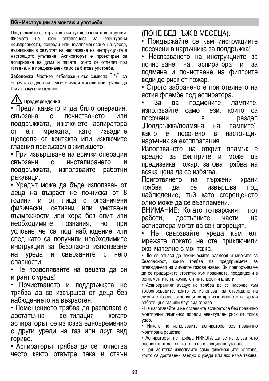 Aténgase estrictamente a las instrucciones del presente manual. Se declina cada responsabilidad por eventuales inconvenientes, daños o incendios provocados al aparato originados por la inobservancia de las instrucciones colocadas en este manual. La campana extractora ha sido ideada para la aspiración de humos y vapores producidos durante la cocción y para el uso doméstico.
