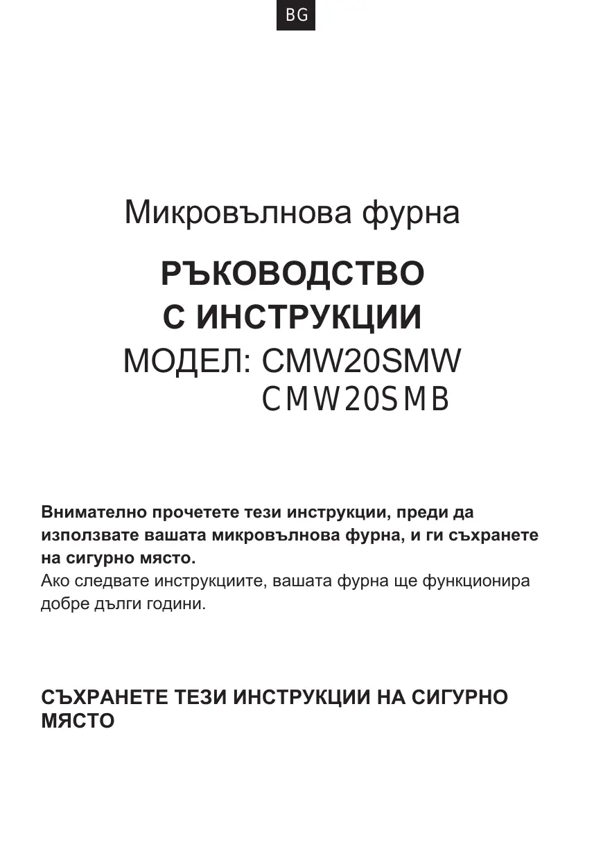 Téléchargez la notice de votre Микровълнови фурни au format PDF gratuitement ! Retrouvez votre notice CMW20SMB - CANDY et reprennez votre appareil électronique en main. Sur cette page sont publiés tous les documents nécessaires à l'utilisation de votre appareil CMW20SMB de la marque CANDY.