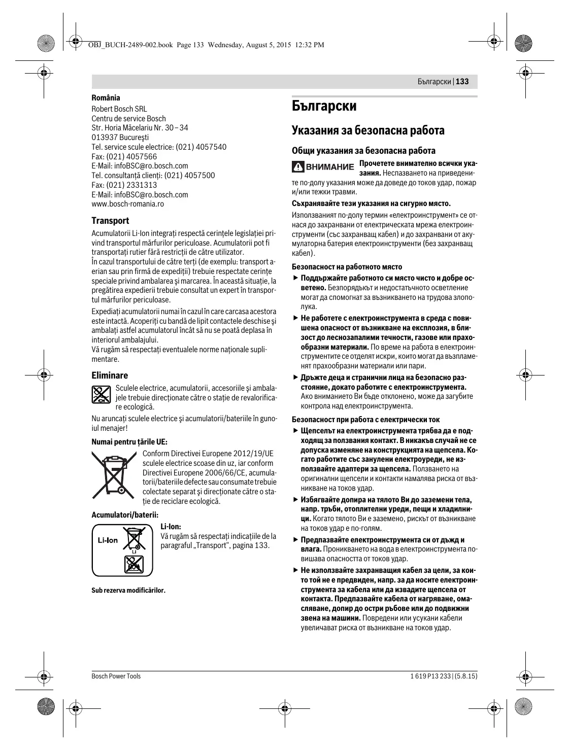 > N'utilisez que des accus à ions lithium d'origine Bosch dont latension correspond à celle indiquée sur la plaque signalétique de l'outil électroportatif. L'utilisa- tion de tout autre accumulateur peut entrainer des bles- sures et des risques d'incendie.