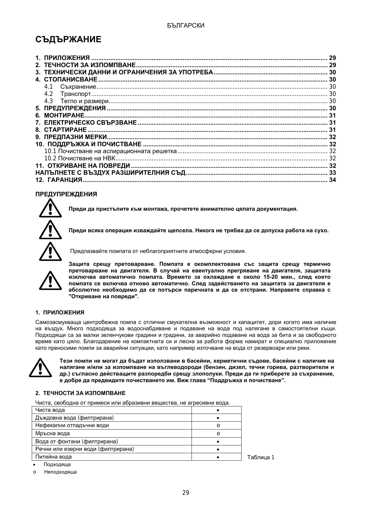 2. LIQUIDES POMPABLES Propre sans corps solide ou abrasif, sans calcaire ou minéralisation excessive