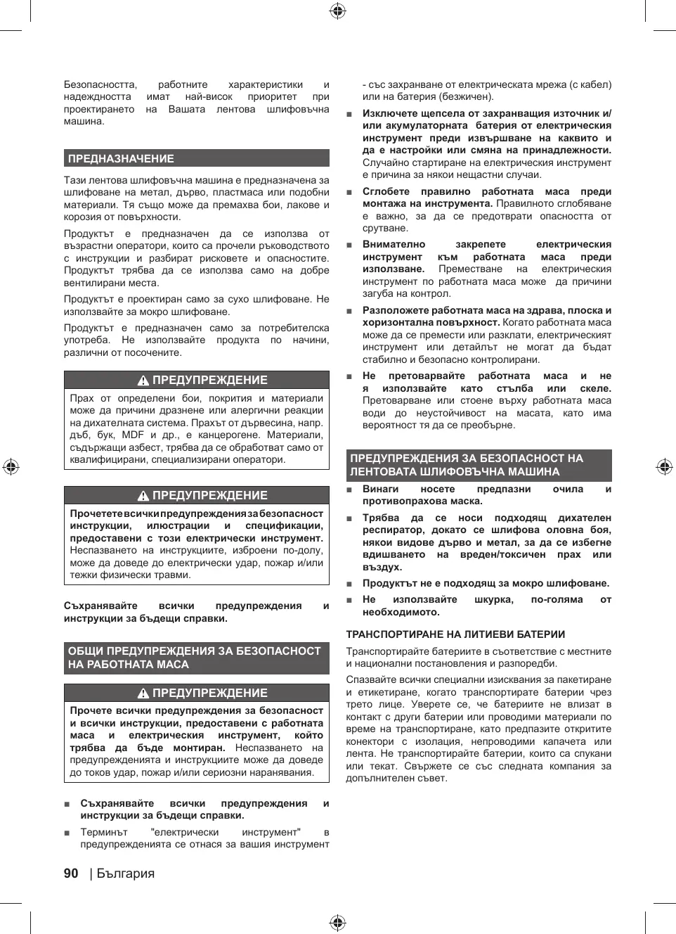 AVERTISSEMENTS DE SECURITE RELATIFS A PONCEUSE À BANDE