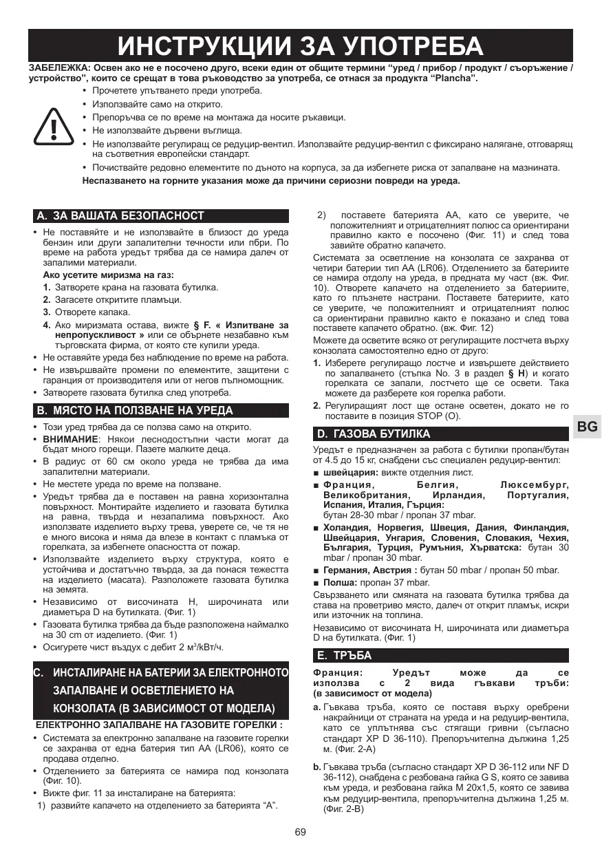 D. BOUTEILLE DE GAZ Cet appareil est réglé pour fonctionner avec les