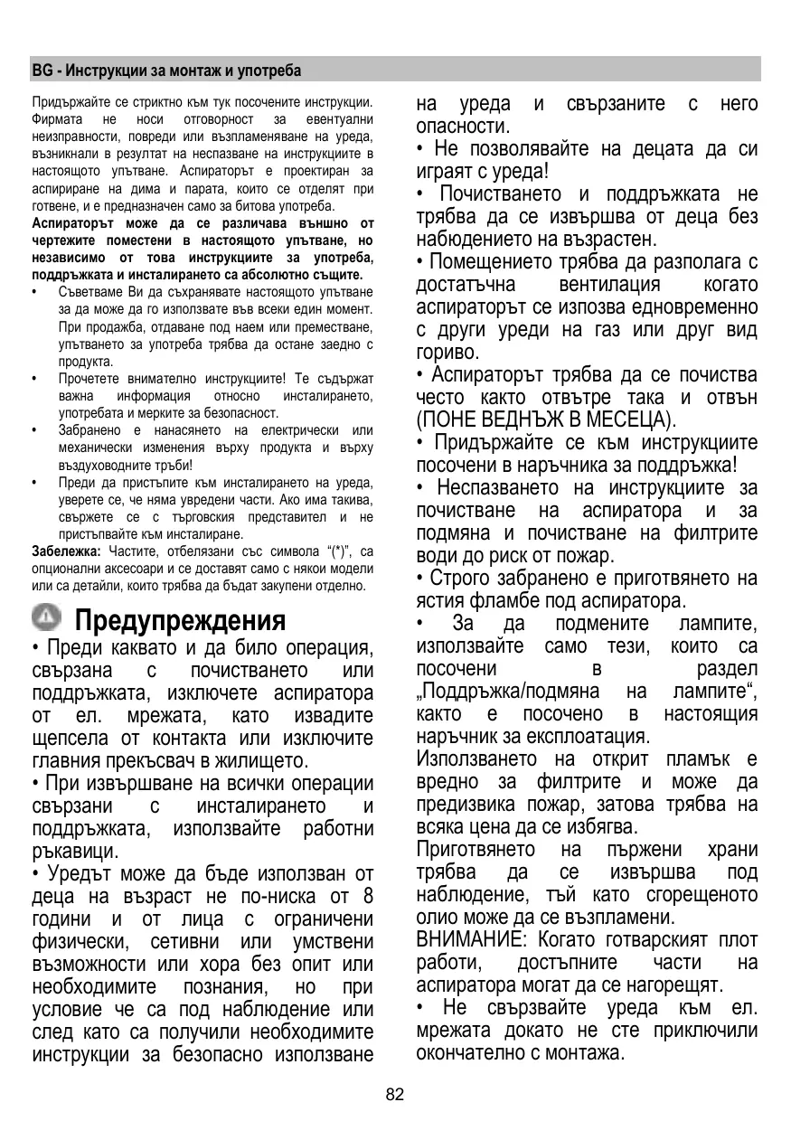 + La hotte ne doit JAMAIS être utilisée comme une surface d'appui, sauf indication expresse.