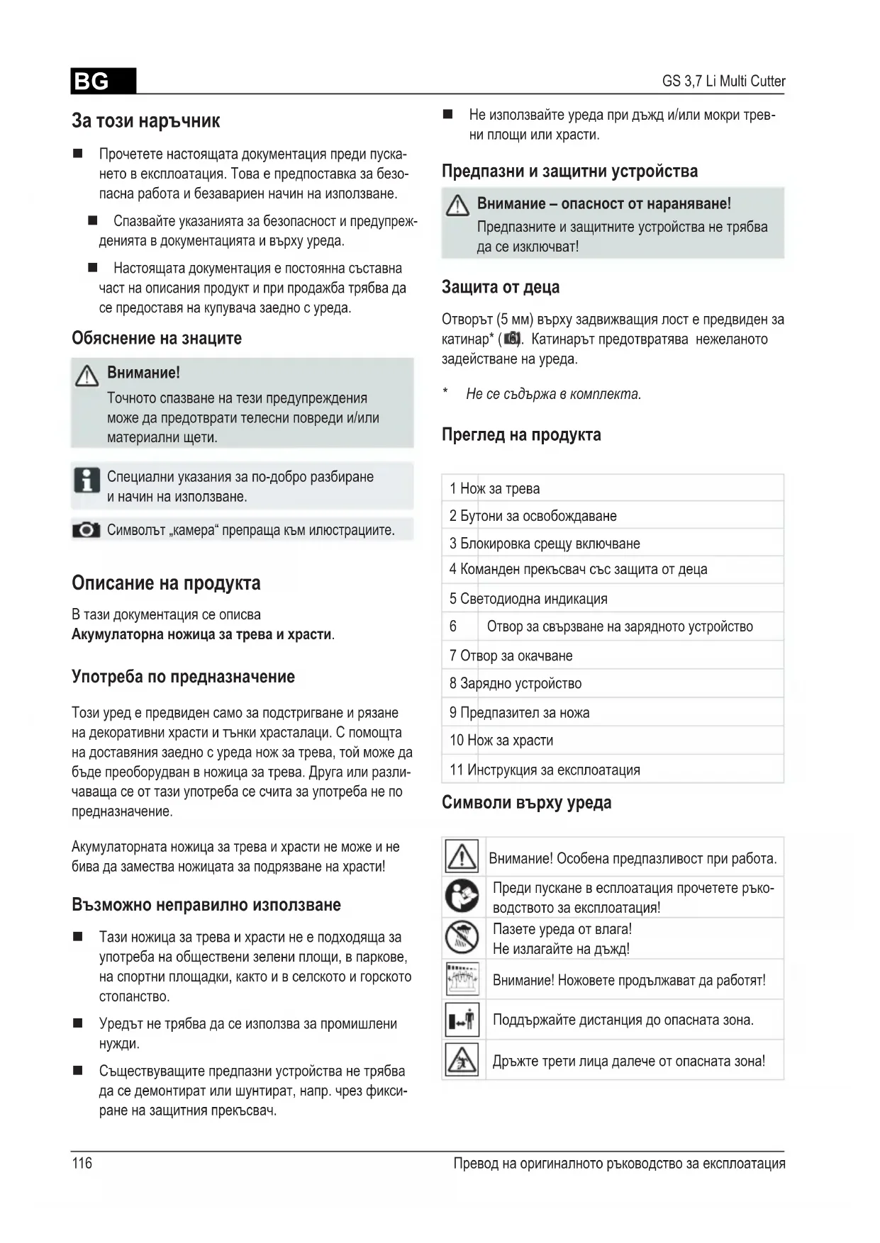 РЪКОВОДСТВО ЗА ПОТРЕБИТЕЛЯ GS 3 7 Li AL-KO