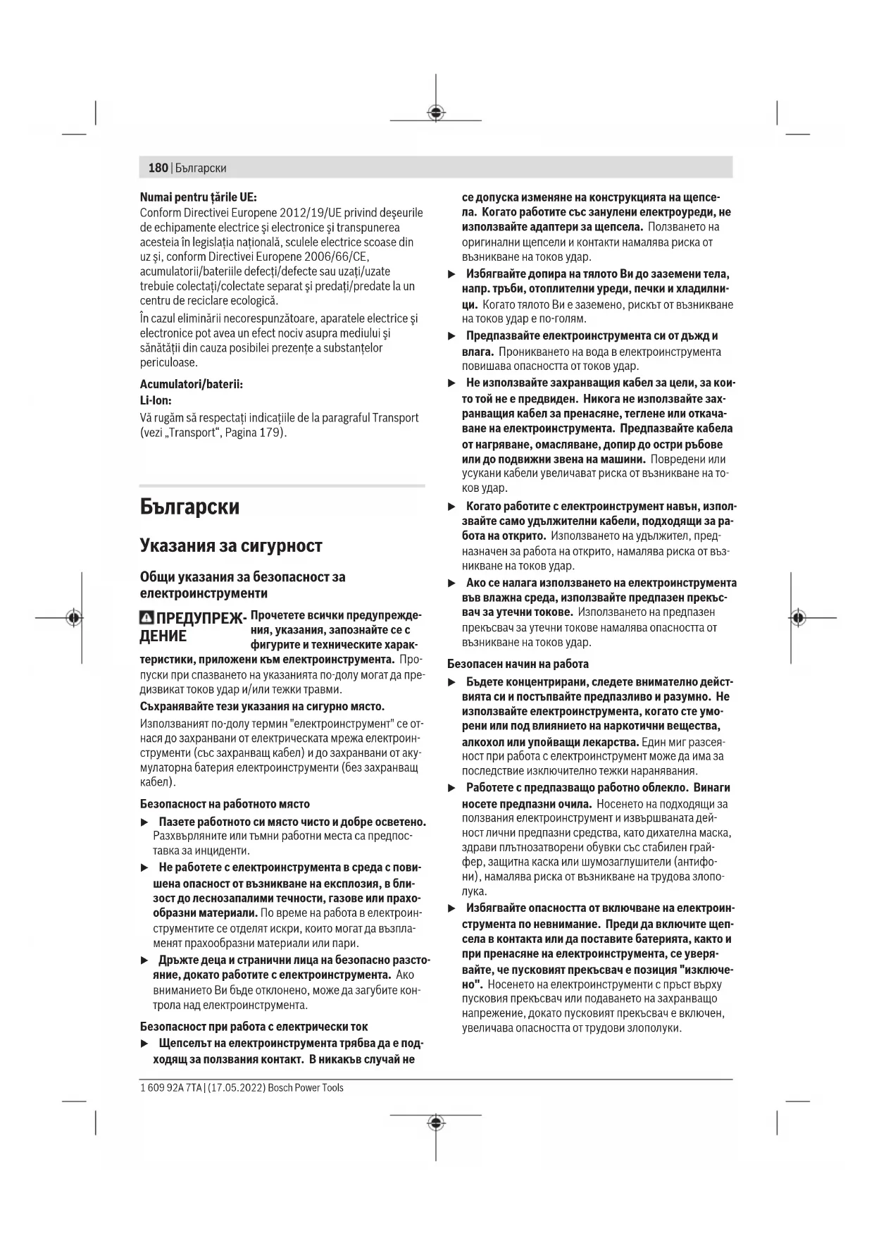 увеличава опасността от трудови злополуки. 1 609 92A 7TA | (17.05.2022) Bosch Power ToolsБългарски | 181
