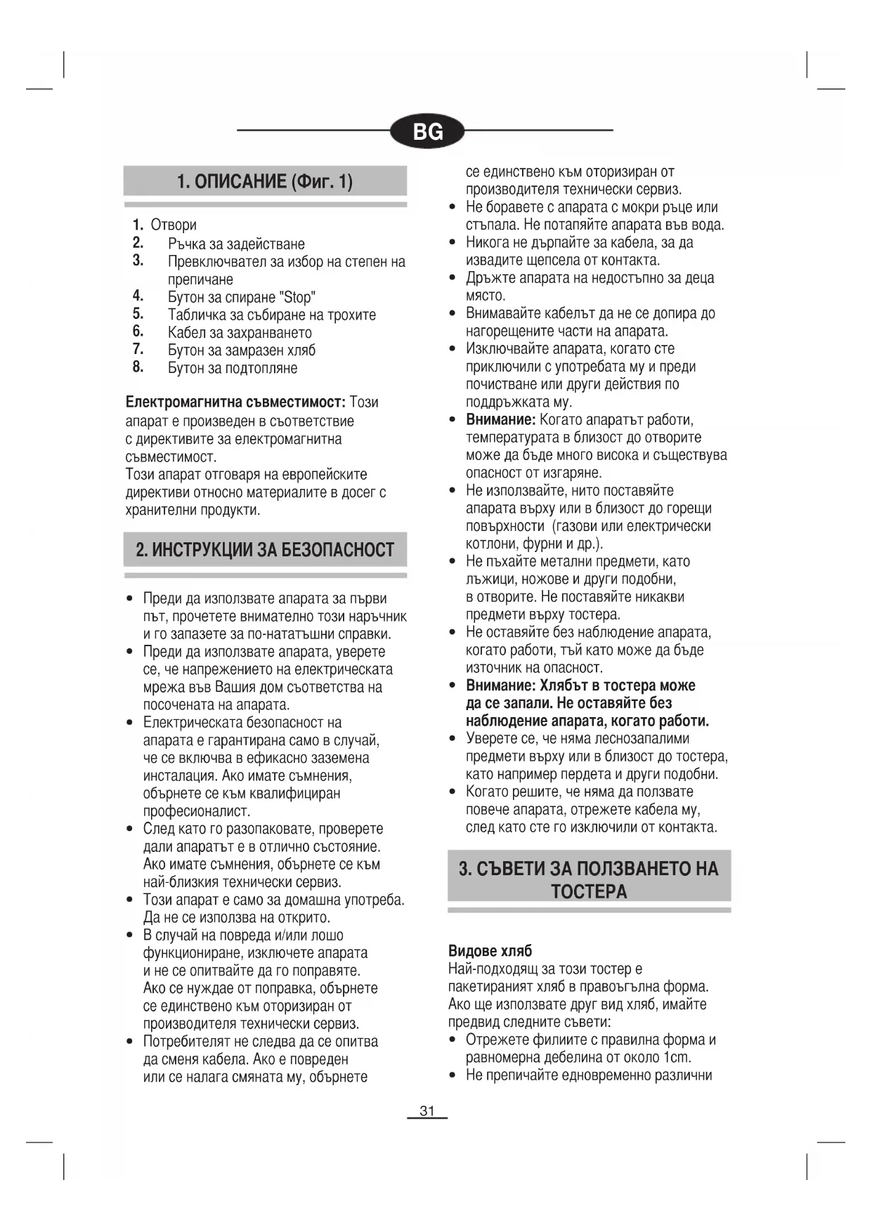 2. ИНСТРУКЦИИ ЗА БЕЗОПАСНОСТ