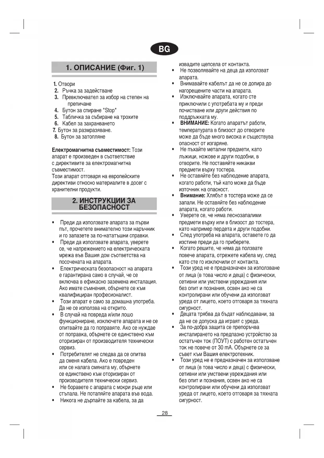 • Внимание: Хлябът в тостера може да се