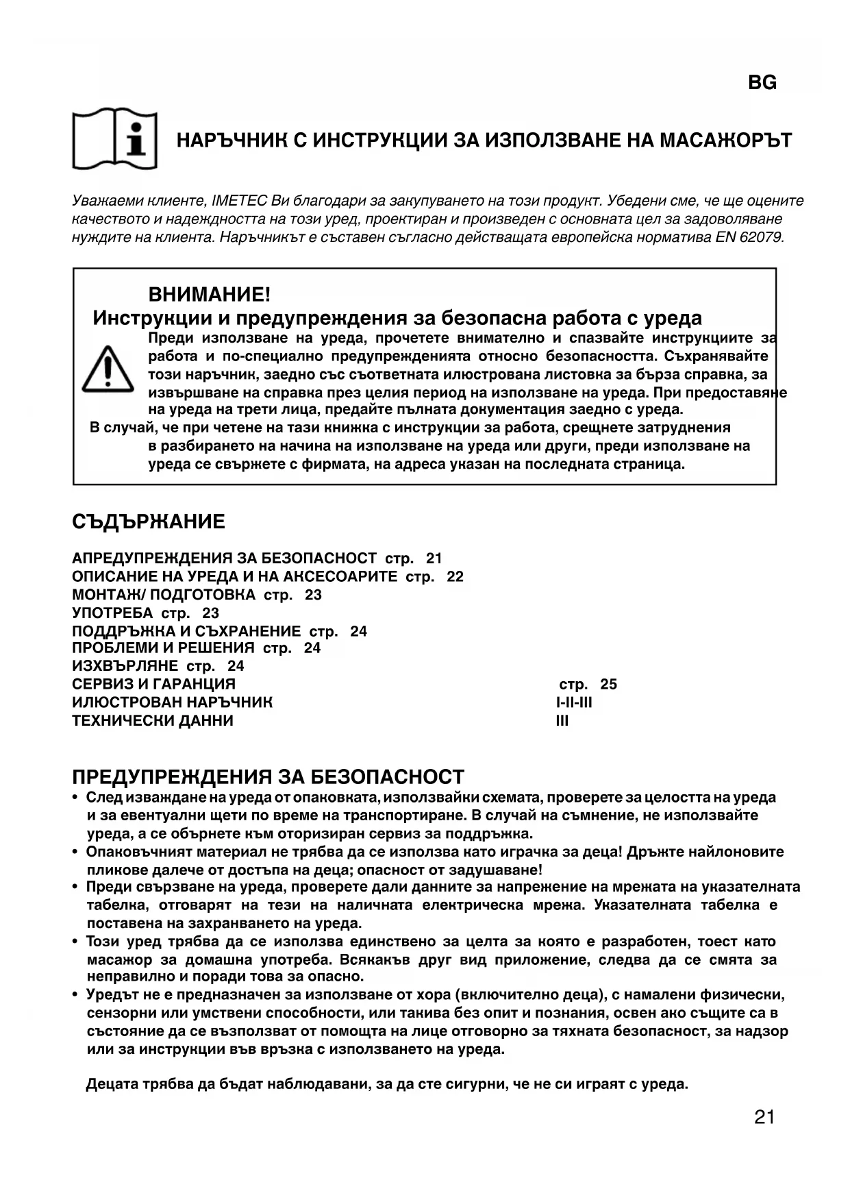 Уважаеми клиенте, IMETEC Ви благодари за закупуването на този продукт. Убедени сме, че ще оцените