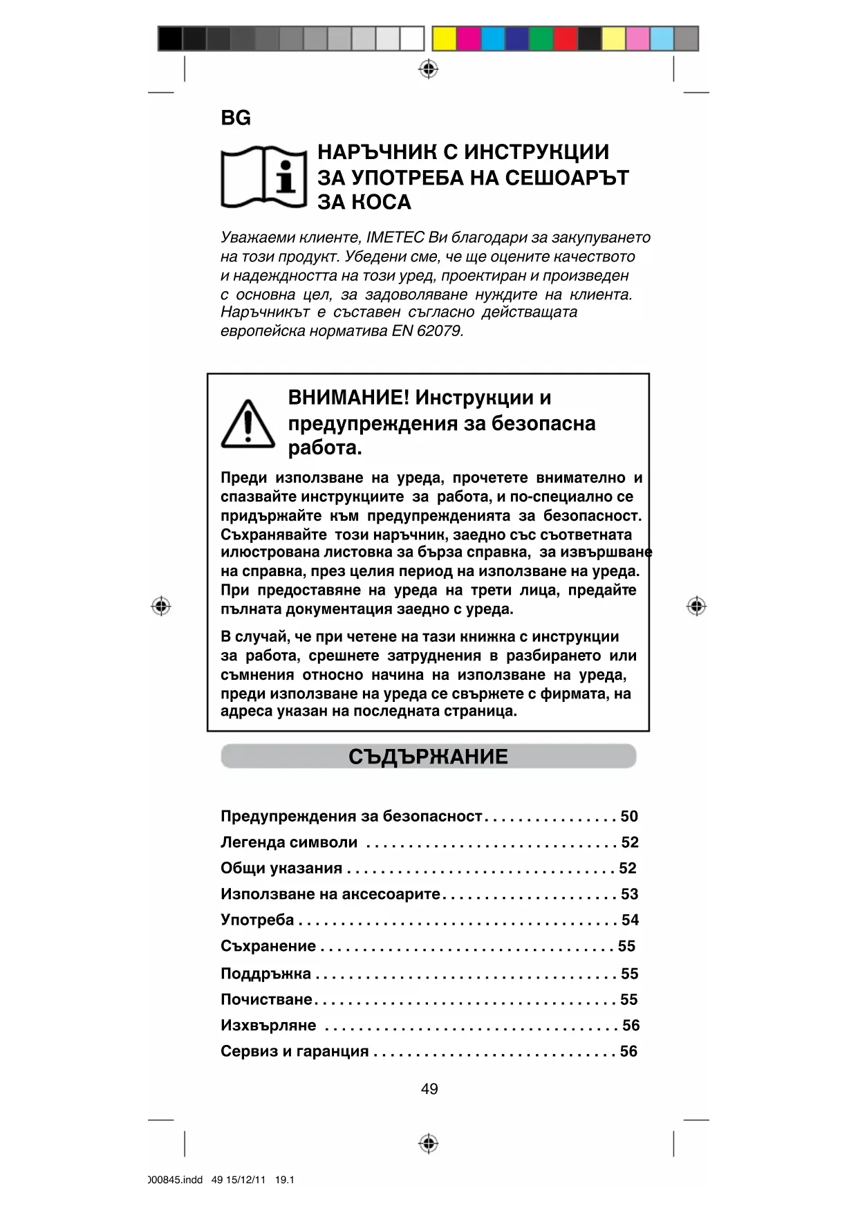 Уважаеми клиенте, IMETEC Ви благодари за закупуването