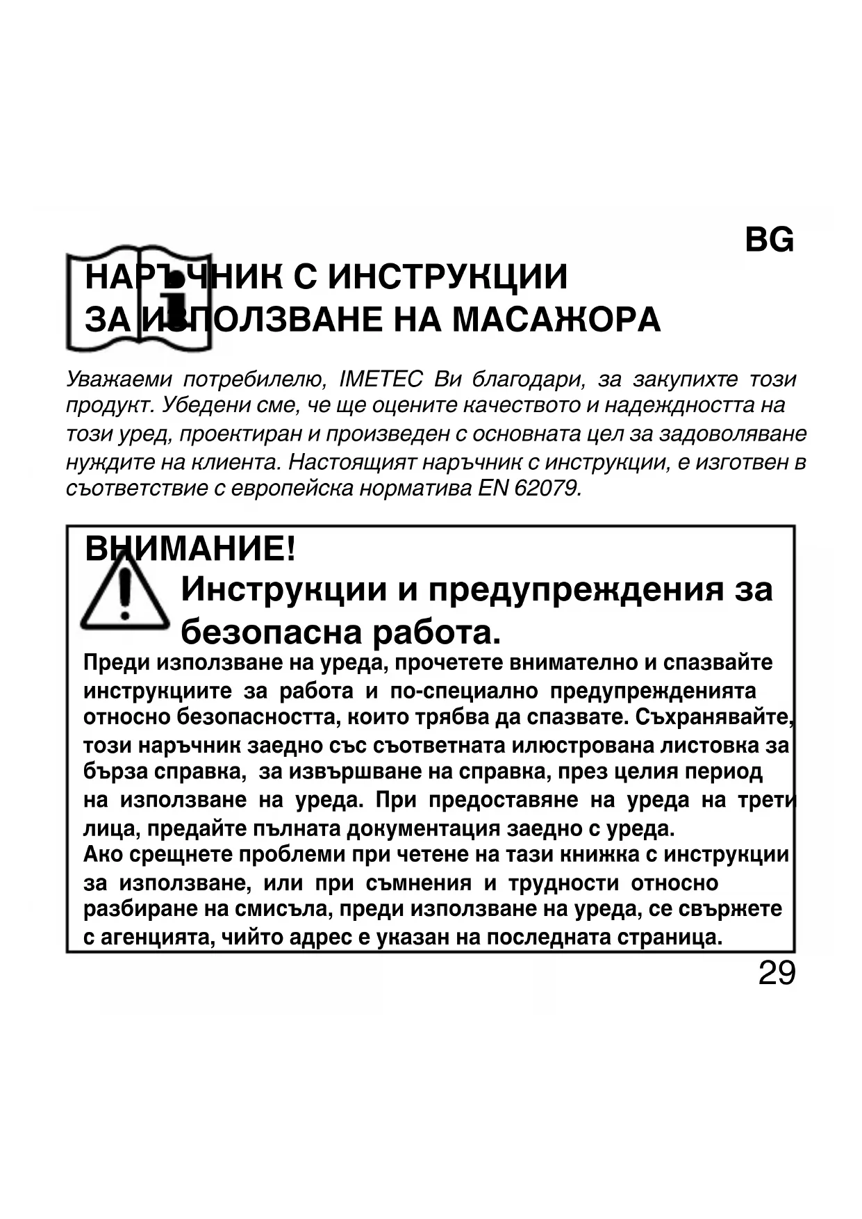 Уважаеми потребилелю, IMETEC Ви благодари, за закупихте този
