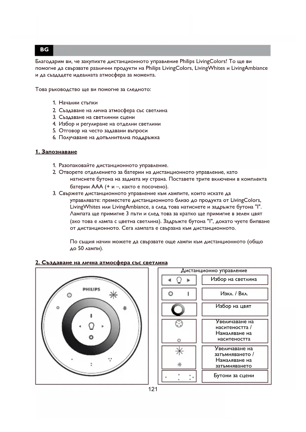 Благодарим ви, че закупихте дистанционното управление Philips LivingColors! То ще ви