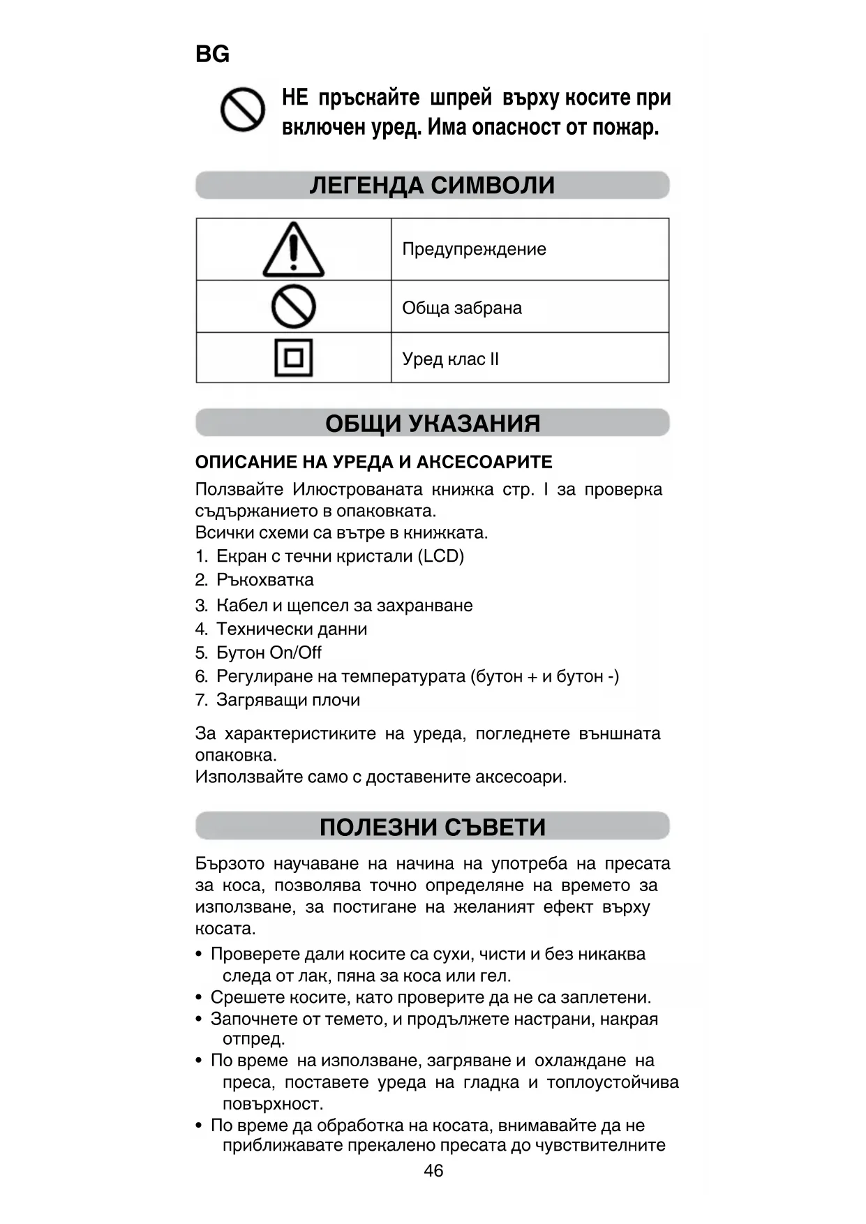 Опаковката на уреда е съставена от рециклируеми