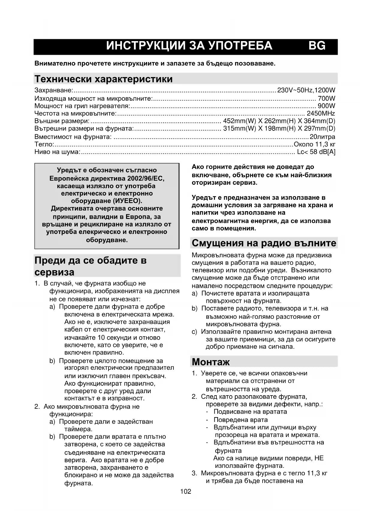 РЪКОВОДСТВО ЗА ПОТРЕБИТЕЛЯ SMO20DGW GORENJE