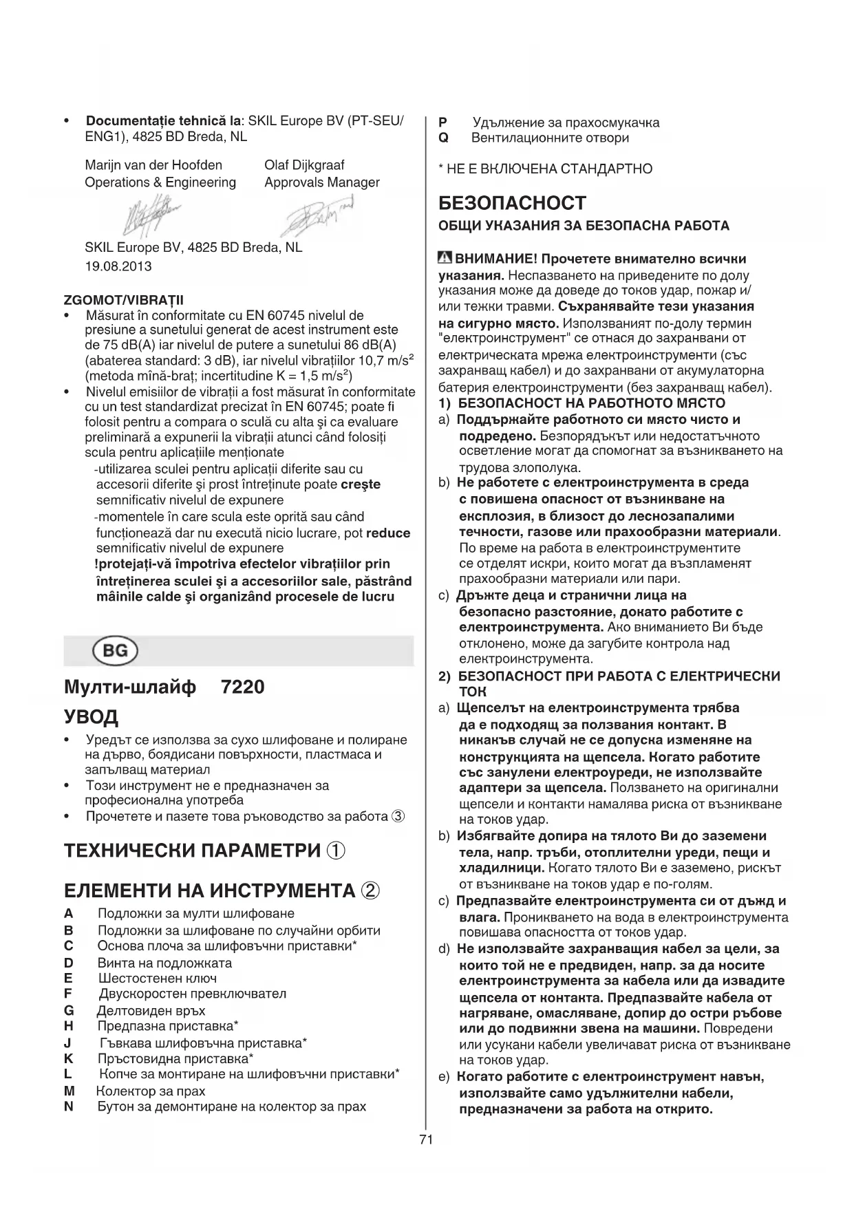 стандартизирани документи: EN 60745, EN 61000,