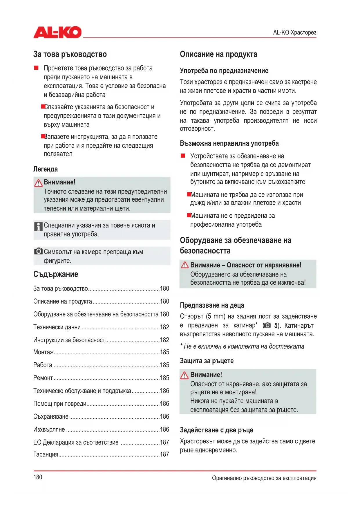 Téléchargez la notice de votre Ножици за жив плет au format PDF gratuitement ! Retrouvez votre notice HT 700 - AL-KO et reprennez votre appareil électronique en main. Sur cette page sont publiés tous les documents nécessaires à l'utilisation de votre appareil HT 700 de la marque AL-KO.