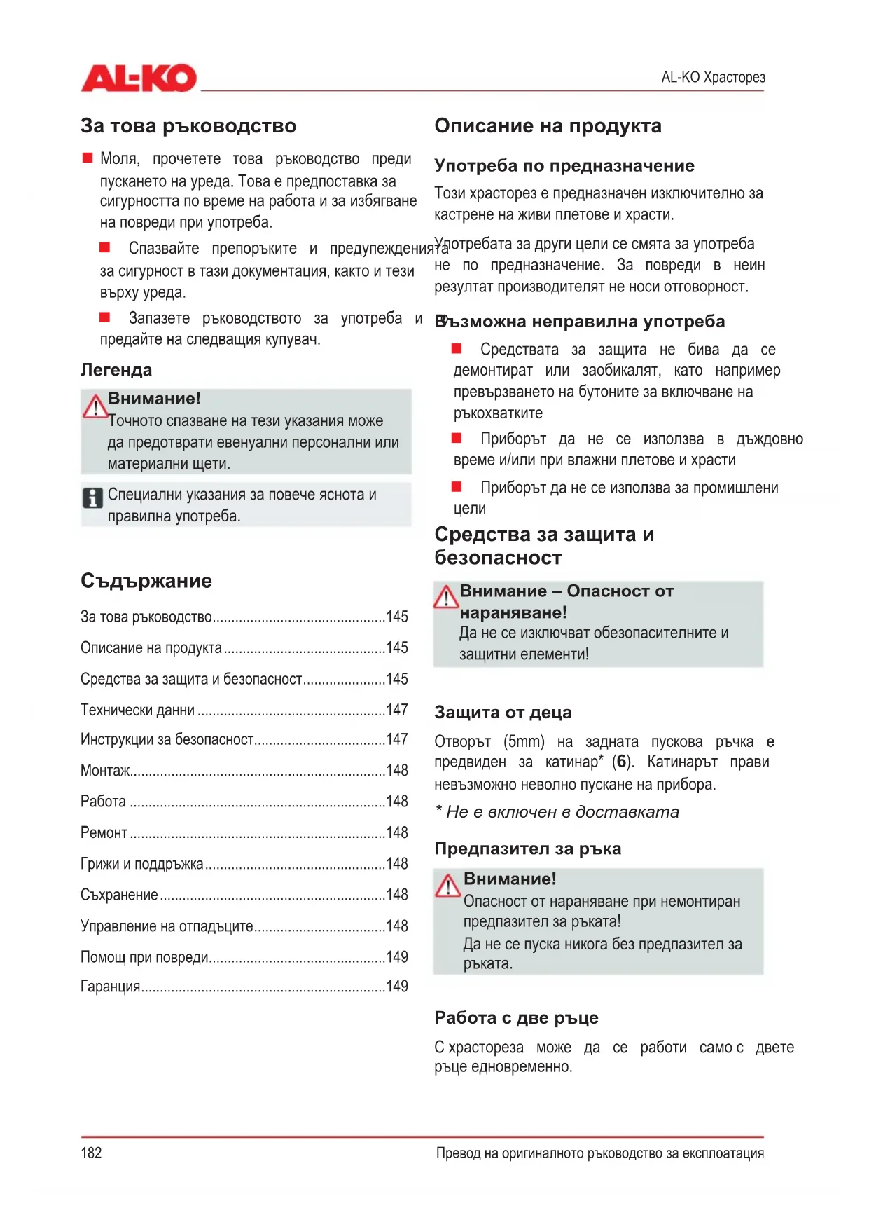 Téléchargez la notice de votre Ножици за жив плет au format PDF gratuitement ! Retrouvez votre notice HT 550 - AL-KO et reprennez votre appareil électronique en main. Sur cette page sont publiés tous les documents nécessaires à l'utilisation de votre appareil HT 550 de la marque AL-KO.