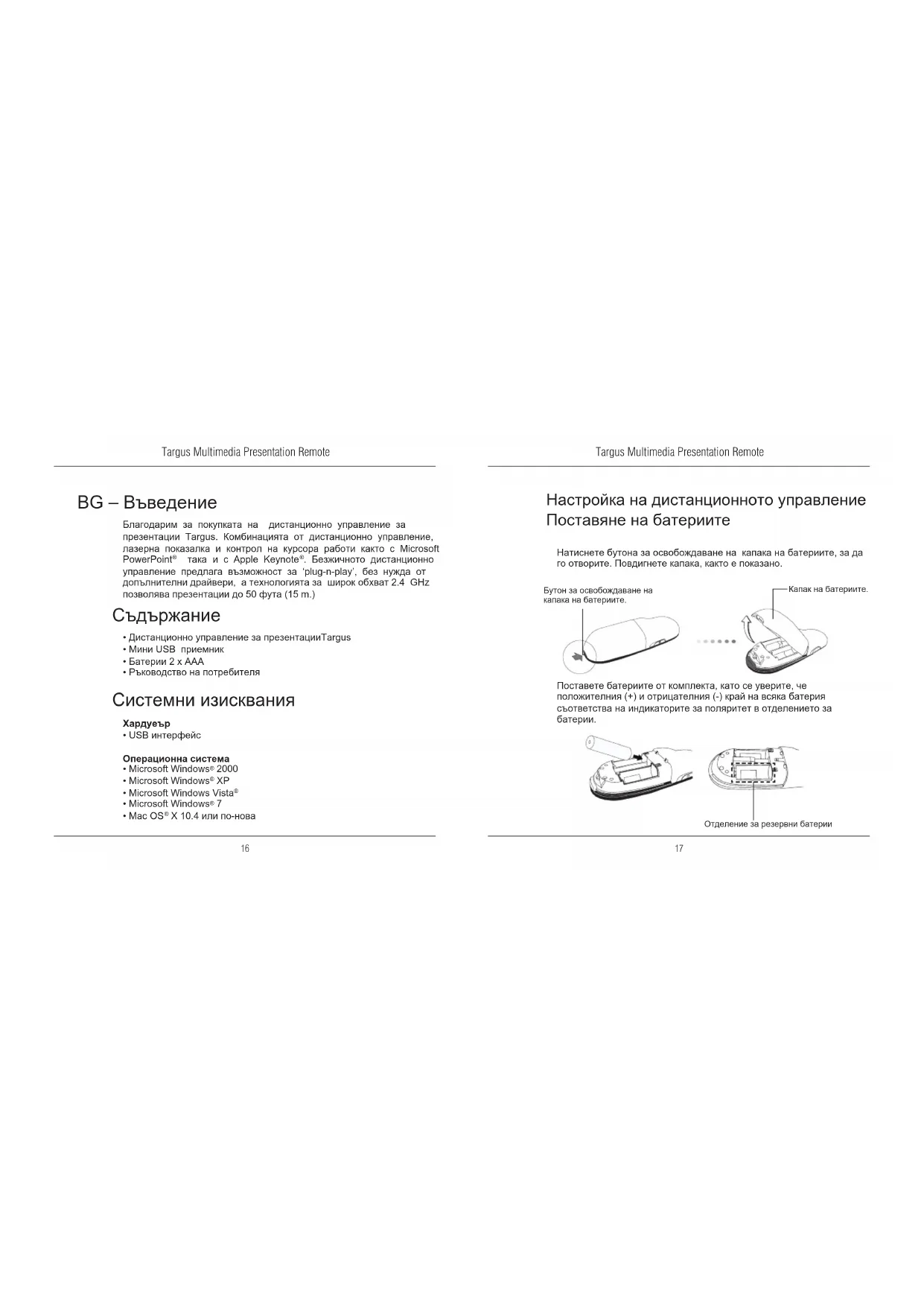 светлинния индикатор ще се изключи.Targus Multimedia Presentation Remote