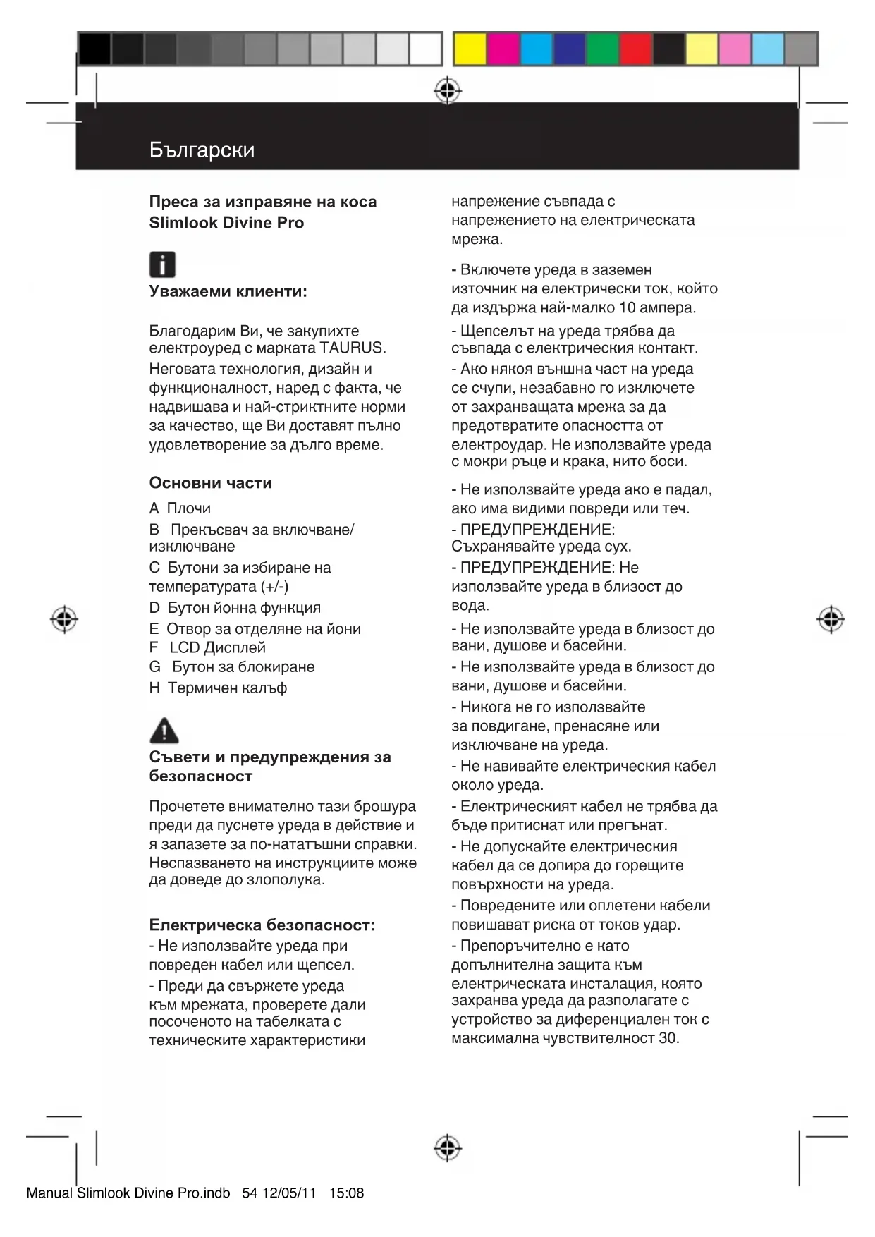 РЪКОВОДСТВО ЗА ПОТРЕБИТЕЛЯ Slimlook Divine Pro TAURUS