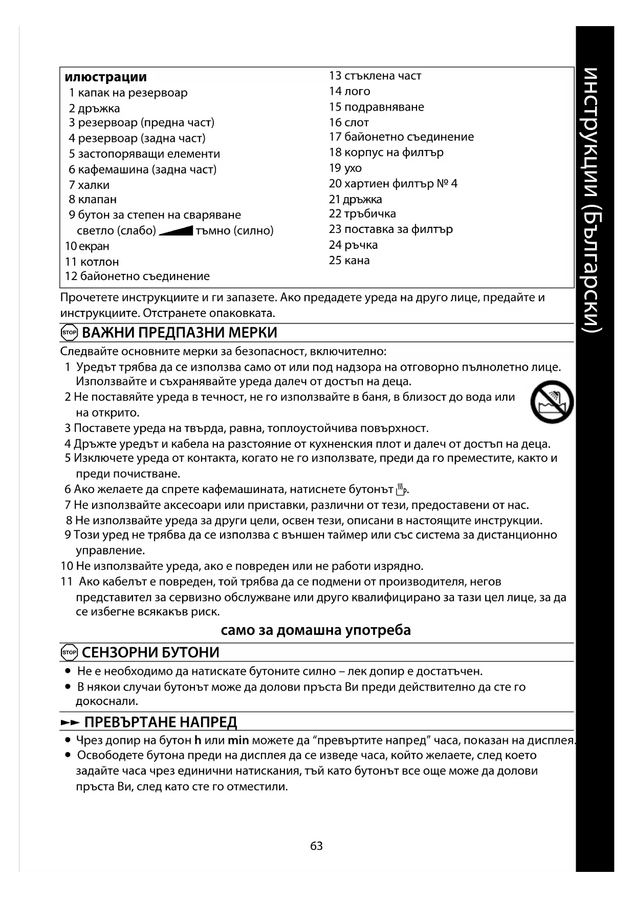 8 Не използвайте уреда за други цели, освен тези, описани в настоящите инструкции.