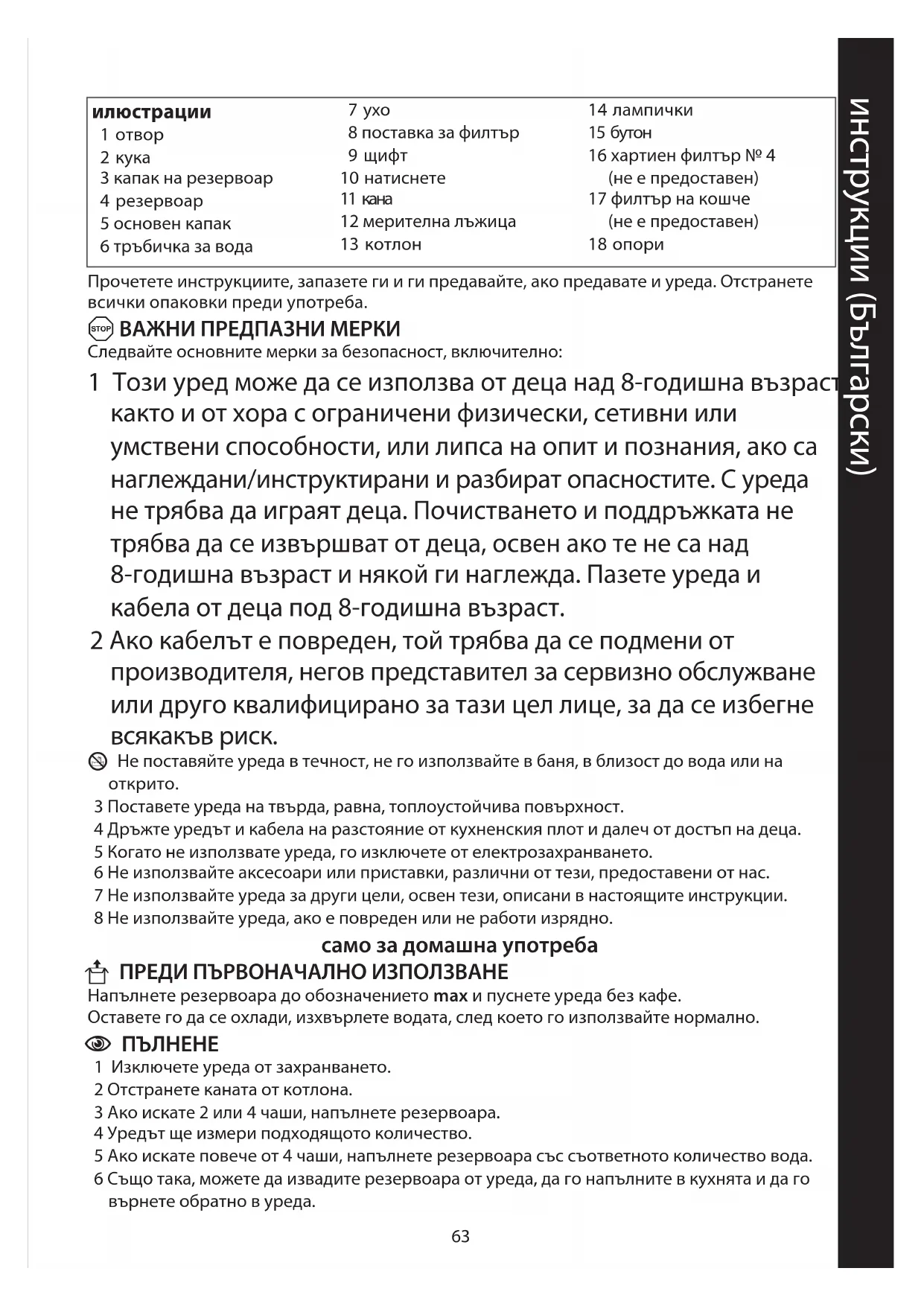 7 Не използвайте уреда за други цели, освен тези, описани в настоящите инструкции.