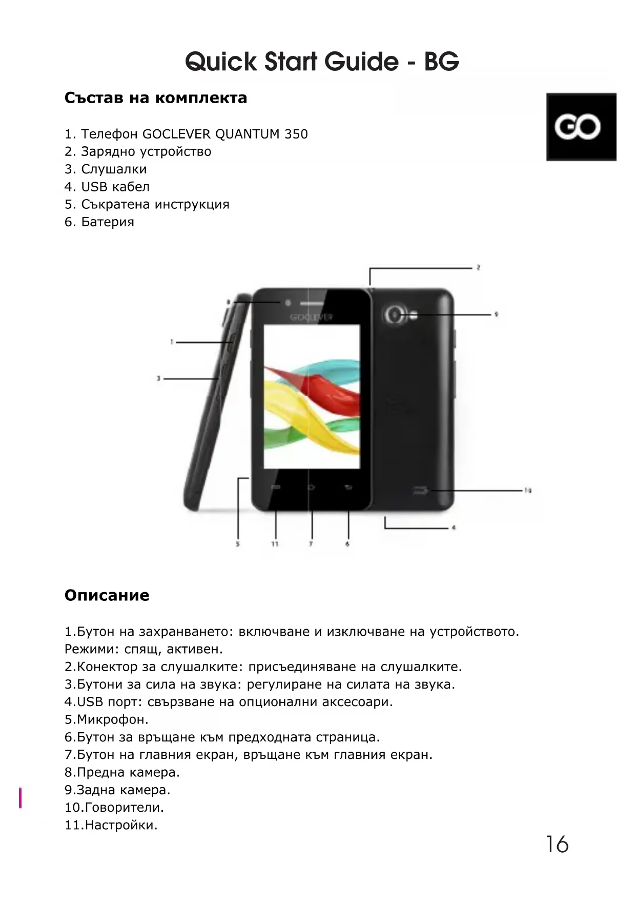 Quantum 350 - смартфон GOCLEVER - Безплатно ръководство за потребителя