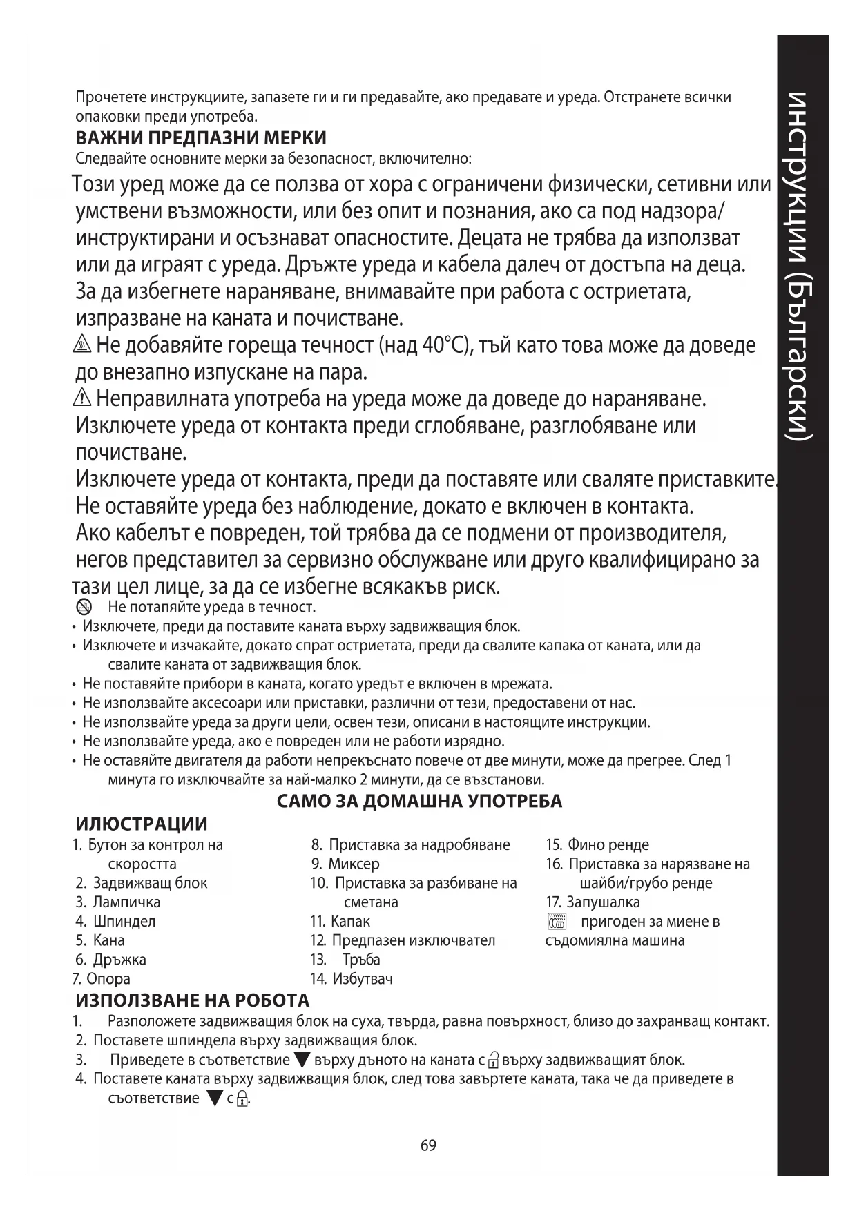 • Не използвайте уреда за други цели, освен тези, описани в настоящите инструкции.