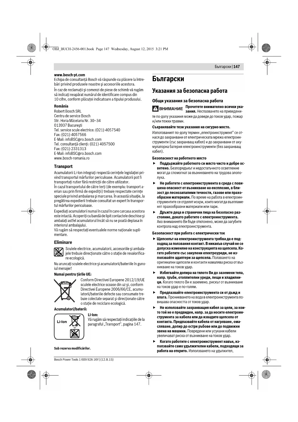 paragraful „Transport“, pagina 147. Sub rezerva modificărilor. Български