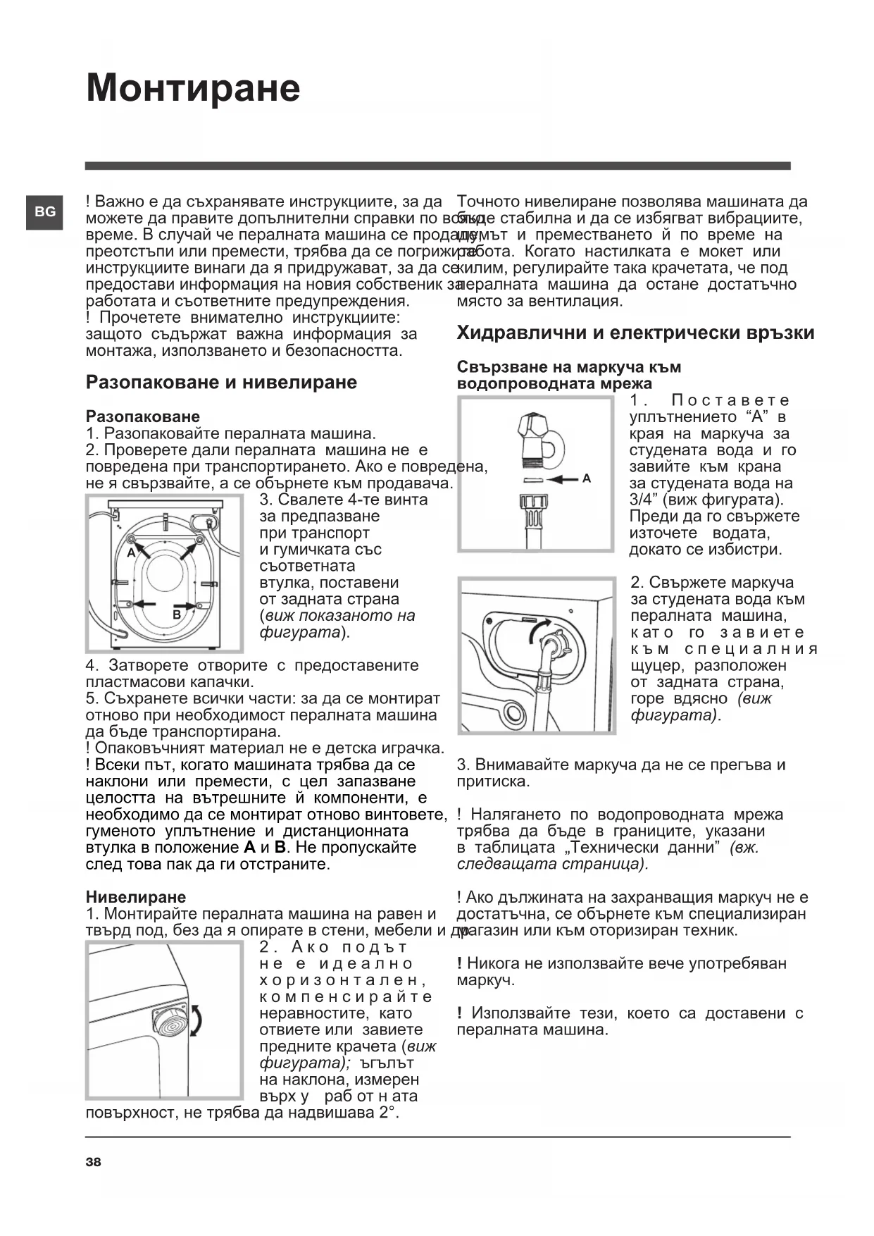 1. Монтирайте пералната машина на равен и