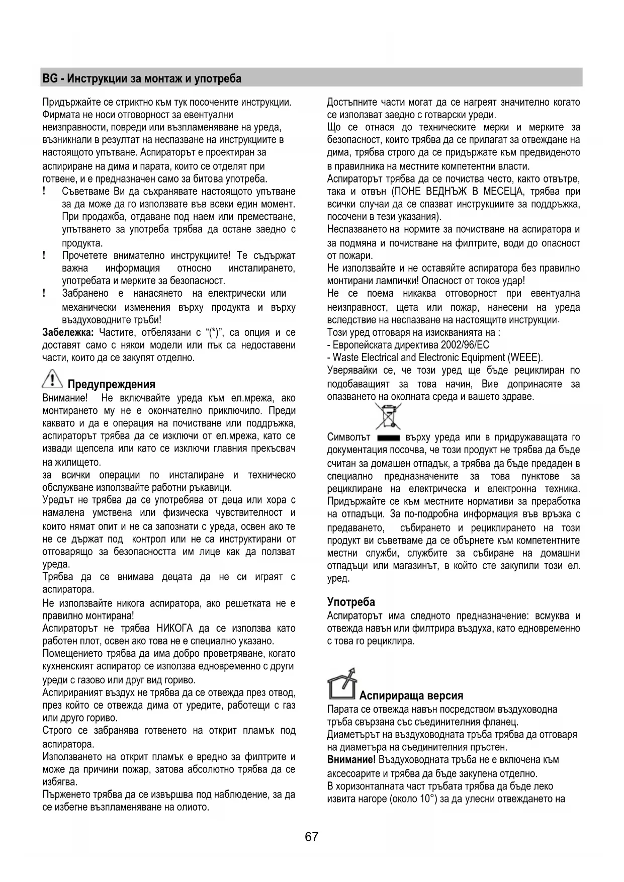 настоящото упътване. Аспираторът е проектиран за