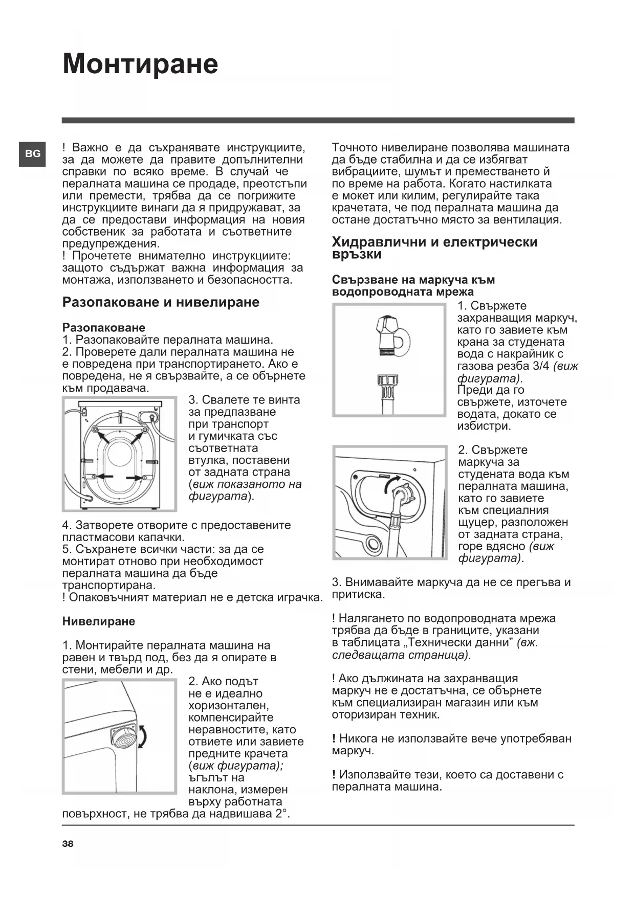 1. Монтирайте пералната машина на